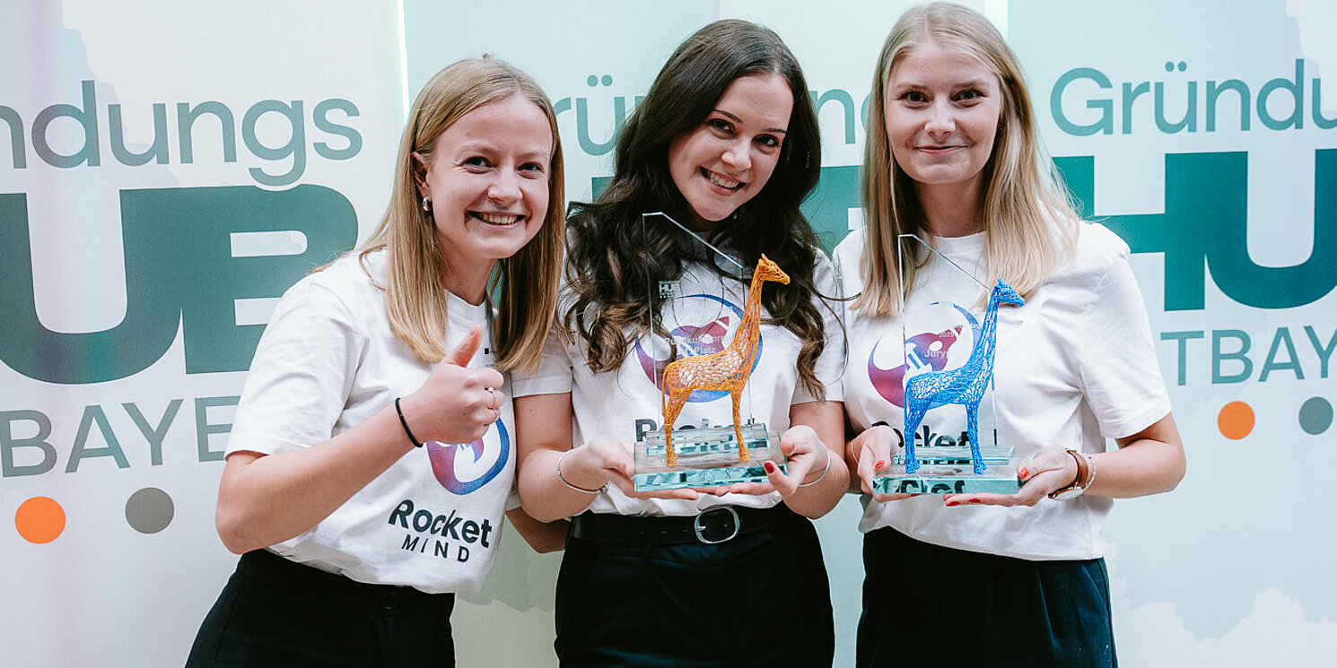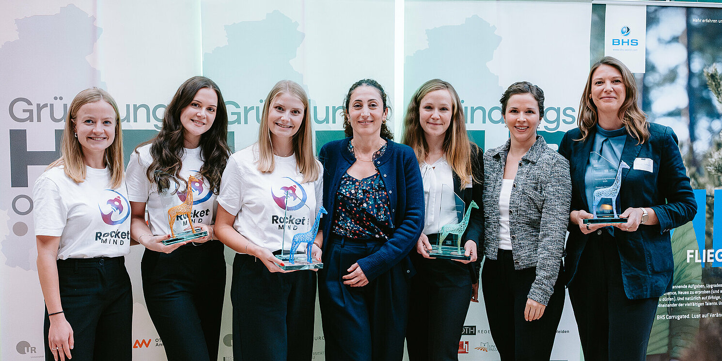Der Female Founders Award ging an Sabrina Holzapfel (Universität Regensburg / Kinderklinik St. Hedwig), die innovative digitale Tools zur frühzeitigen Erkennung postpartaler Depressionen erforscht und gleichzeitig Beruf, Promotion, Familie und Gründungsprojekt vereint.Im Anschluss hatten neun Teams die Chance, Jury und Publikum in einem dreiminütigen Pitch zu überzeugen. Neben Gründerinnen und Gründern der OTH Regensburg nahmen auch Teams aus den GründungsHUB-Ostbayern-Verbundhochschulen Landshut, Deggendorf, Amberg-Weiden und der Universität Regensburg am Pitch-Wettbewerb teil. Zu gewinnen gab es Preisgelder in Höhe von mehr als 5.000 Euro, gesponsert von der BHS Corrugated Maschinen- und Anlagen GmbH. Das Team RocketMIND (OTH Regensburg) konnte gleich doppelt überzeugen und gewann sowohl den Jury- als auch den Publikumspreis. Ihre App stärkt spielerisch die mentale Gesundheit von Kindern. Platz zwei ging an LunaFit (Universität Regensburg) mit einem zyklusorientierten Trainingsplaner für Frauen. Prinity (OTH Regensburg) belegte den dritten Platz mit einem automatisierten Druckbrett für 3D-Drucker.