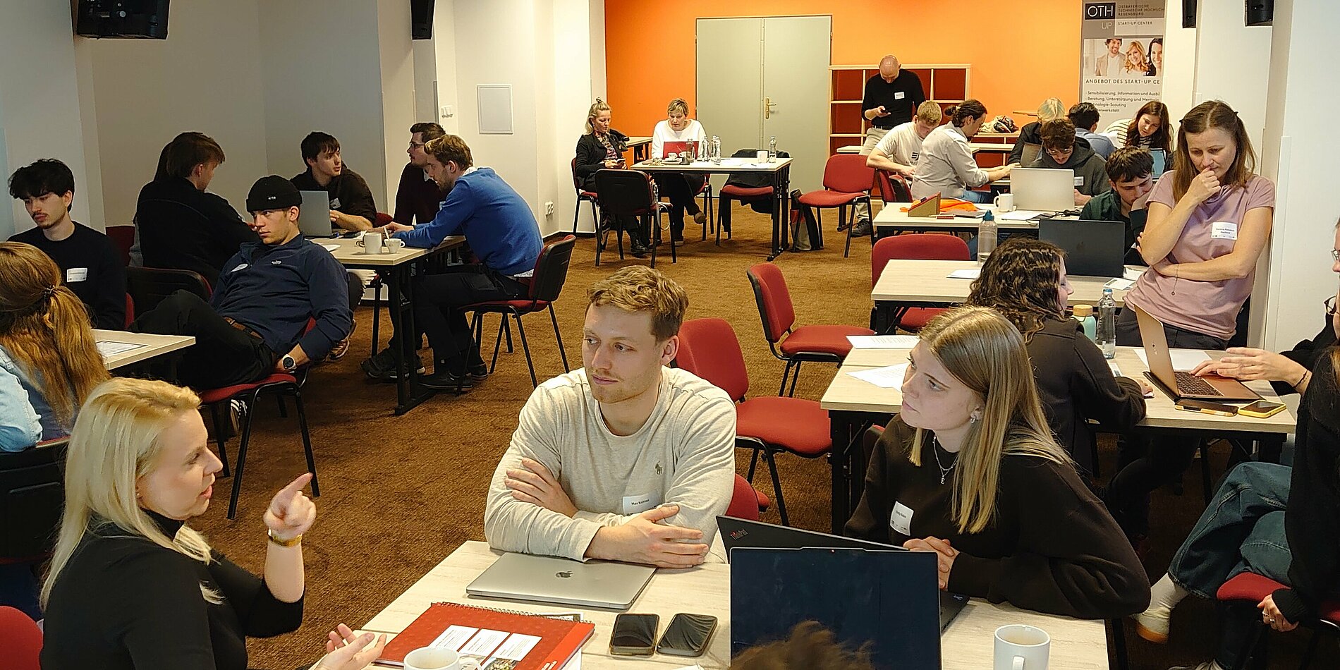 Durch ein vielfältiges Programm sollten die Angebote niedrigschwellig und greifbar dargestellt werden und die Studierenden Mut machen, diese Option als Zukunftsoption mitzudenken. Neben einer interaktiven Landkarte zu den Wegen in die Gründung, individueller Gründungsberatung am Stand sowie einer Live-Demonstration des Multiverse mit dem OTH-Start-up Brainjo, sorgten vor allem die Vorträge für Rekordteilnehmerzahlen.