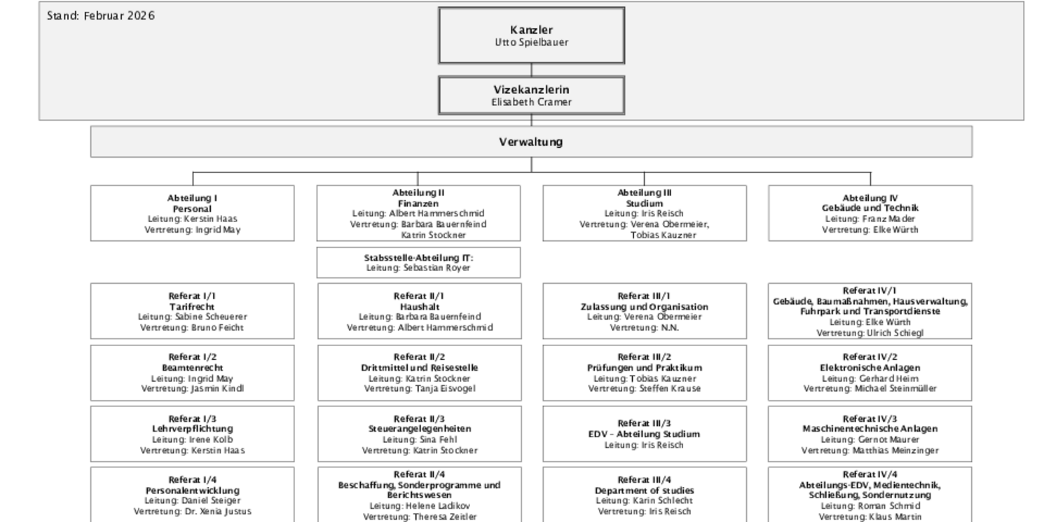 Die Verwaltung der OTH Regensburg ist Ihre Anlaufstelle in allen Belangen, die mit Personal, Finanzen, Studienbedingungen (Organisatorisches, Prüfungen, etc.) oder der technischen Versorgung der Hochschule zu tun haben. Die Hochschulverwaltung gliedert sich in vier Abteilungen und wird von dem Kanzler geleitet.