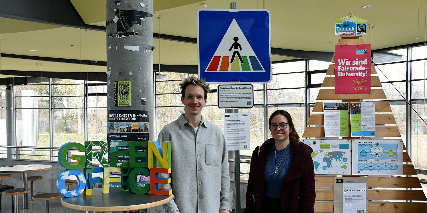 Since the start of the 2026 summer term, a road sign for fairness has been displayed in front of the OTH Regensburg refectory.