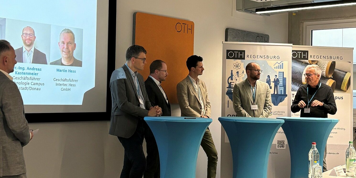 Im Anschluss erläuterte Dr.-Ing. Andreas Kastenmeier, Geschäftsführer des Technologie Campus Neustadt an der Donau, wie Unternehmen von einer Kooperation mit der OTH Regensburg profitieren können: „Unternehmen scheuen oftmals die bürokratischen Hürden von Förderanträgen oder die personellen Kapazitäten, die sie in eigene Forschungsprojekte investieren müssten. In beiden Fällen können wir beispielsweise unterstützen.“
