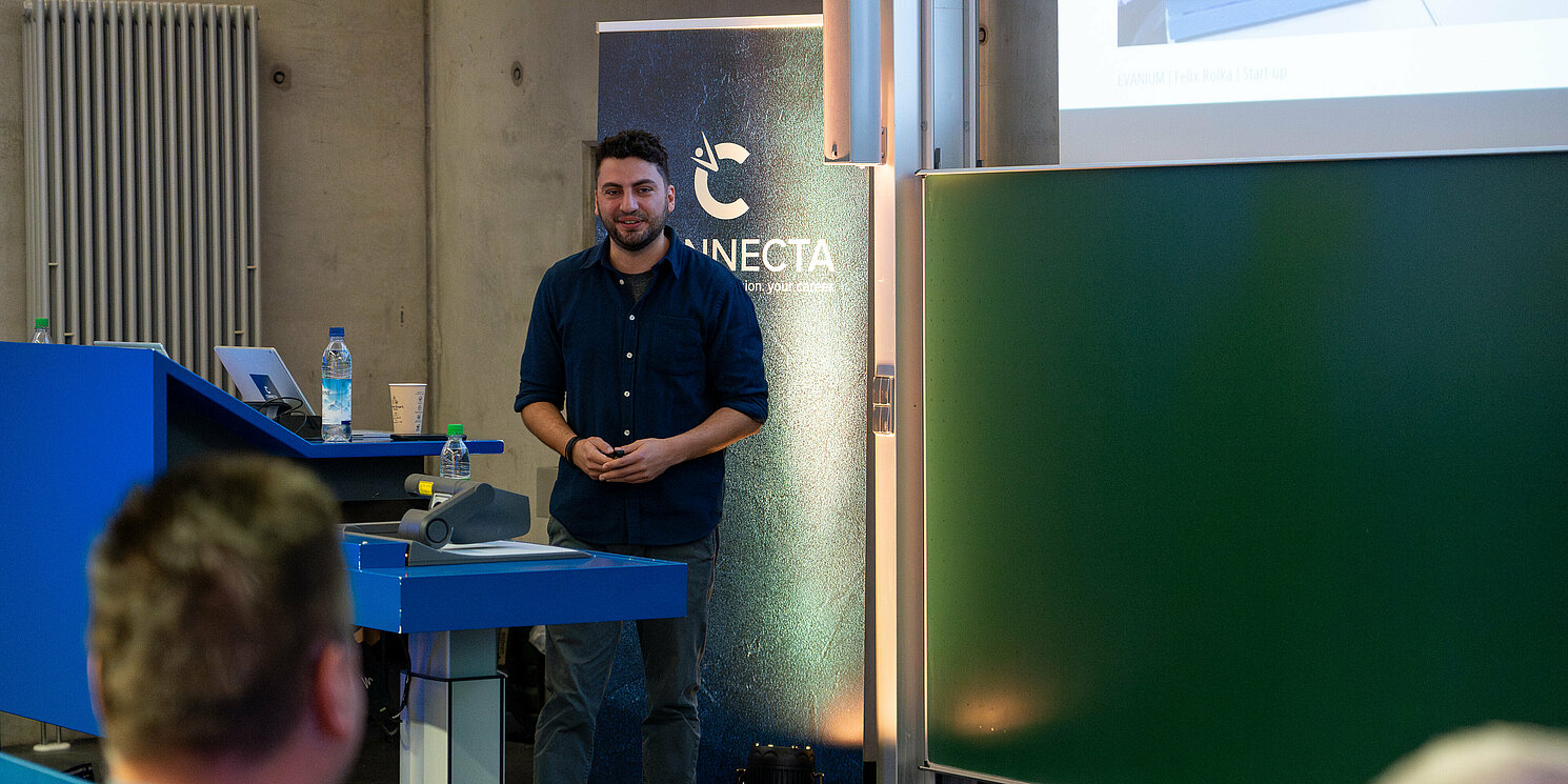 Felix Rolka, Gründer von EVANIUM Healthcare GmbH und ehemaliger OTH-Student Betriebswirtschaftslehre, gab im Rahmen des Vortrags "Start Your StartUp" spannende und persönliche Einblicke in die Entwicklungsphasen, Herausforderungen und Meilensteine, die ihm beim Aufbau seines Start-ups begegnet sind.