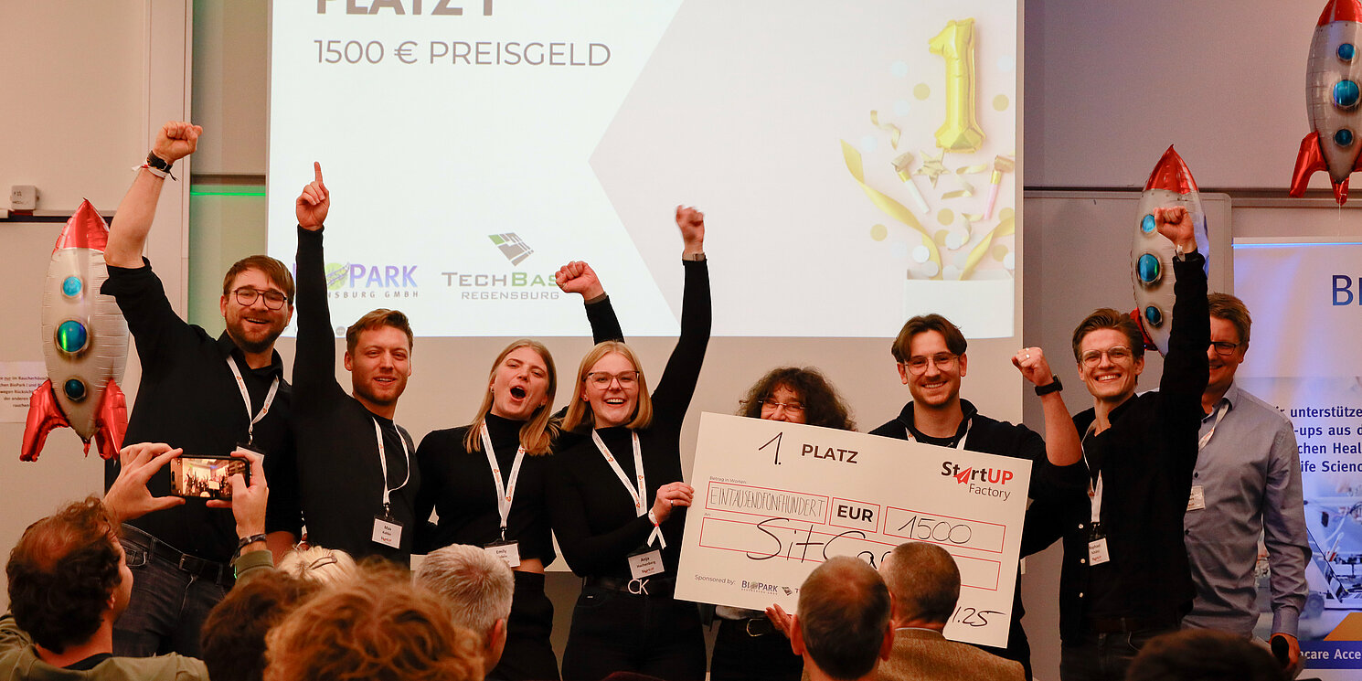 Am Ende des Wochenendes kürte die Jury das Team SitCare zum Sieger der StartUP Factory 2025. Mit Anja Hachenberg, Moritz Endres, Emily Kolein und Raphael Schätzl studieren vier der sechs Teammitglieder im Masterstudiengang Digital Entrepreneurship an der OTH Regensburg. Raphael Schätzl zeigte sich begeistert vom Wochenende: „Wir hatten uns im Rahmen unseres Masterstudiums Digital Entrepreneurship über verschiedene Projektideen ausgetauscht. Da einige von uns Menschen im Rollstuhl im persönlichen Umfeld haben, war uns schnell klar: Wir wollen hier etwas entwickeln, das wirklich hilft. So entstand die Idee einer steuerbaren Sitzunterlage gegen Dekubitus.“