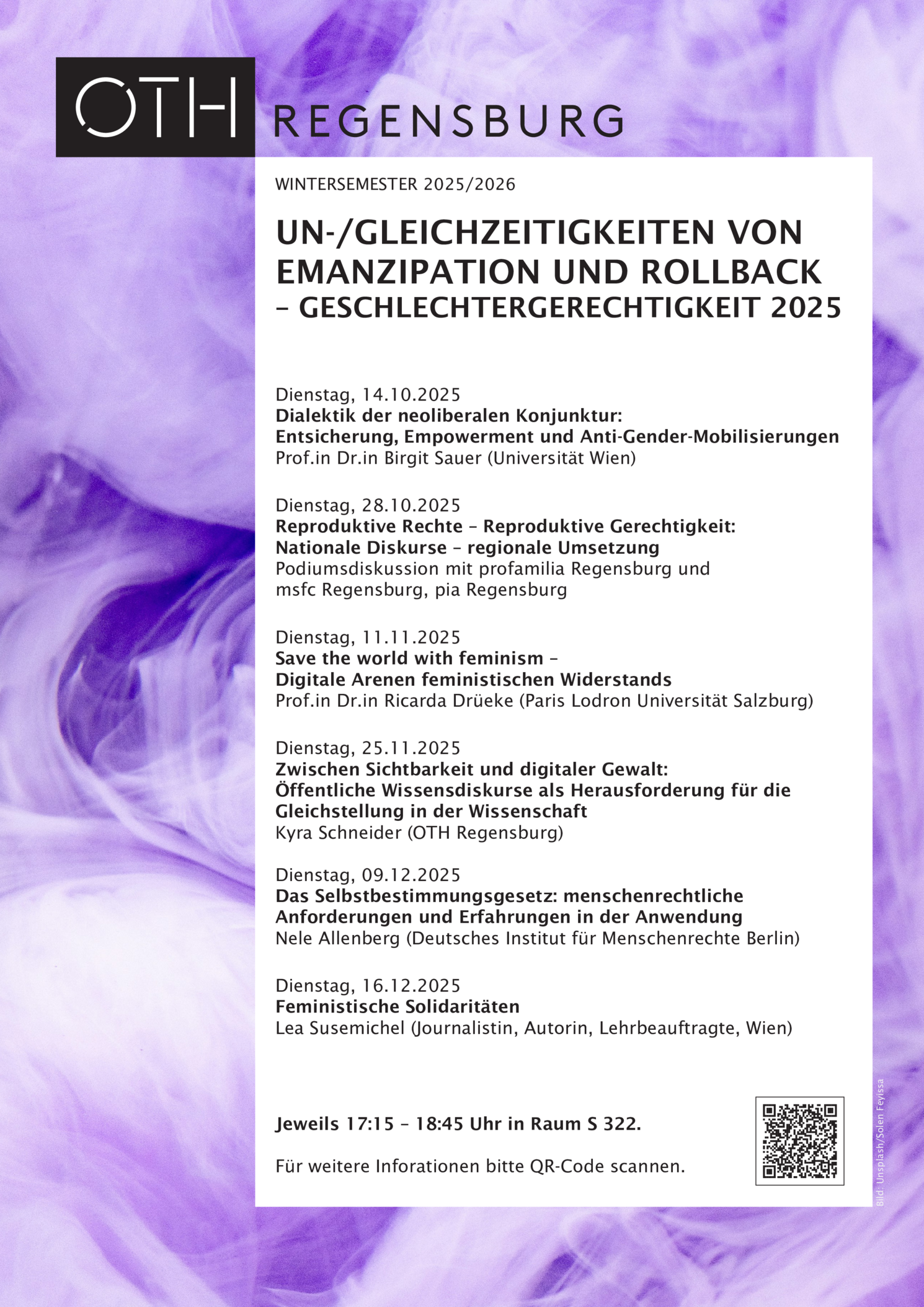 Dienstag, 25.11.2025: Zwischen Sichtbarkeit und digitaler Gewalt: Öffentliche Wissensdiskurse als Herausforderung für die Gleichstellung in der Wissenschaft. Vortrag Kyra Schneider (Forschungsprojekt Digital Hate, OTH Regensburg)