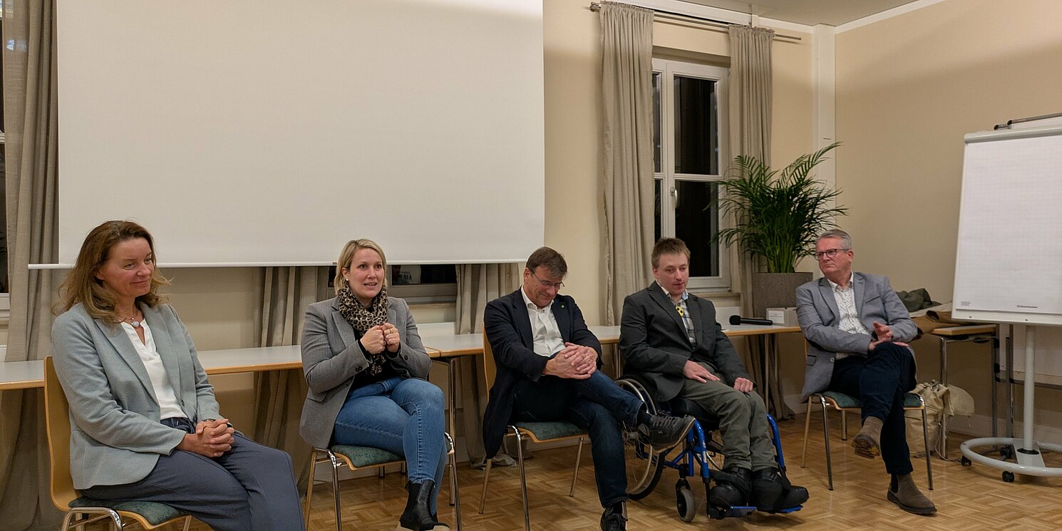 Wie kann Inklusion und Integration in der Praxis gelingen? Darüber diskutierten schließlich moderiert von Julia Punk, Referentin für Personalentwicklung bei der Katholischen Jugendfürsorge Regensburg, Michael Eibl, Melanie Eibl, Susanne Scherrer, Personalleiterin der Katholischen Jugendfürsorge Regensburg, Sebastian Müller, Inklusionsbeauftragter der Katholischen Jugendfürsorge Regensburg sowie Martin Schmid, Koordinator und Inklusionsberater der EAA Region Oberpfalz. „Menschen mit Behinderung haben alle ihre Stärken und diese Stärken muss man nutzen. Man darf nicht immer nur defizitorientiert sein.“ Betonte Sebastian Müller, selbst Alumnus des Masterstudiengangs Soziale Arbeit Inklusion – Exklusion an der OTH Regensburg. Inklusion und Barrierefreiheit hieße aber auch immer, Kompromisse einzugehen, so Müller. Martin Schmid wies ausdrücklich auf die Möglichkeit hin, sich als Arbeitgeber hinsichtlich der Beschäftigung von Menschen mit Handicap umfassend beraten und unterstützen zu lassen.