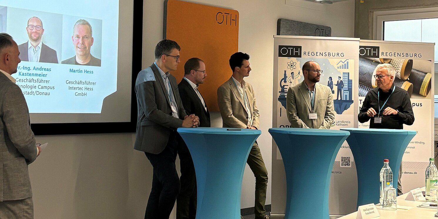 Im Anschluss erläuterte Dr.-Ing. Andreas Kastenmeier, Geschäftsführer des Technologie Campus Neustadt an der Donau, wie Unternehmen von einer Kooperation mit der OTH Regensburg profitieren können: „Unternehmen scheuen oftmals die bürokratischen Hürden von Förderanträgen oder die personellen Kapazitäten, die sie in eigene Forschungsprojekte investieren müssten. In beiden Fällen können wir beispielsweise unterstützen.“