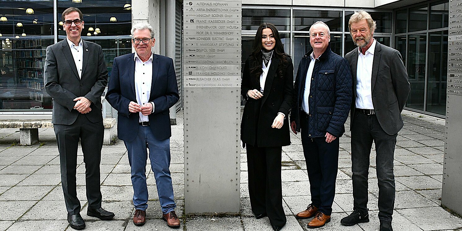 Die Stiftung zur Förderung der OTH Regensburg hat zwei weitere Unterstützende gewonnen: Die Bayernwerk Akademie sowie die MTG Wirtschaftskanzlei sind ab sofort an der Stifter-Stele vor dem Eingang zu Mensa und Bibliothek verewigt. Die Zahl der Namen auf den Stelen steigt damit weiter und liegt inzwischen deutlich über 160 – ein sichtbares Zeichen für das beständige Engagement von Unternehmen, Institutionen und Privatpersonen zugunsten der Studierenden.