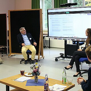 MdB Peter Aumer und MdL Jürgen Eberwein erhielten im Start-up Lab der OTH Regensburg Einblicke in die Welt des Unternehmertums.